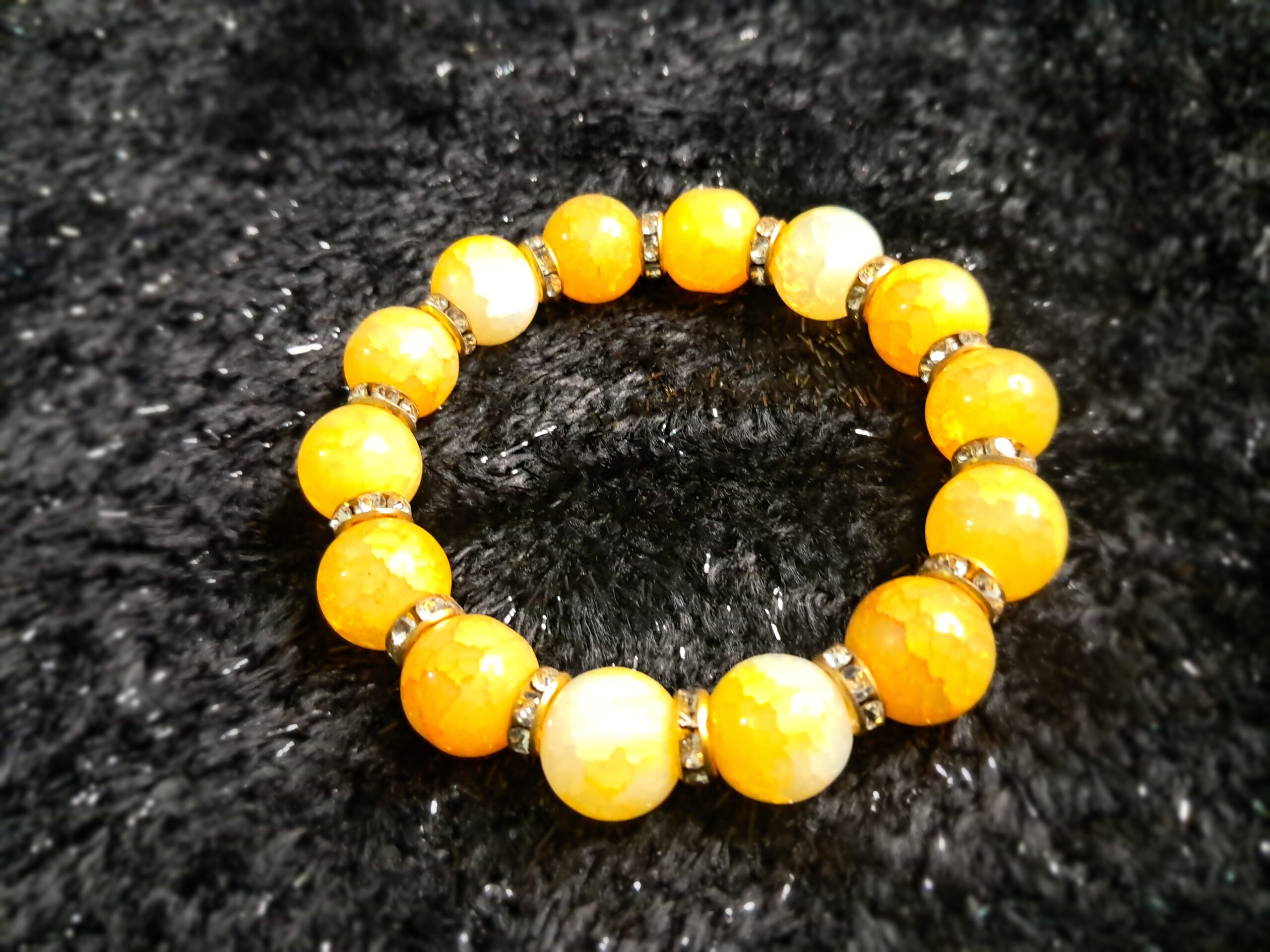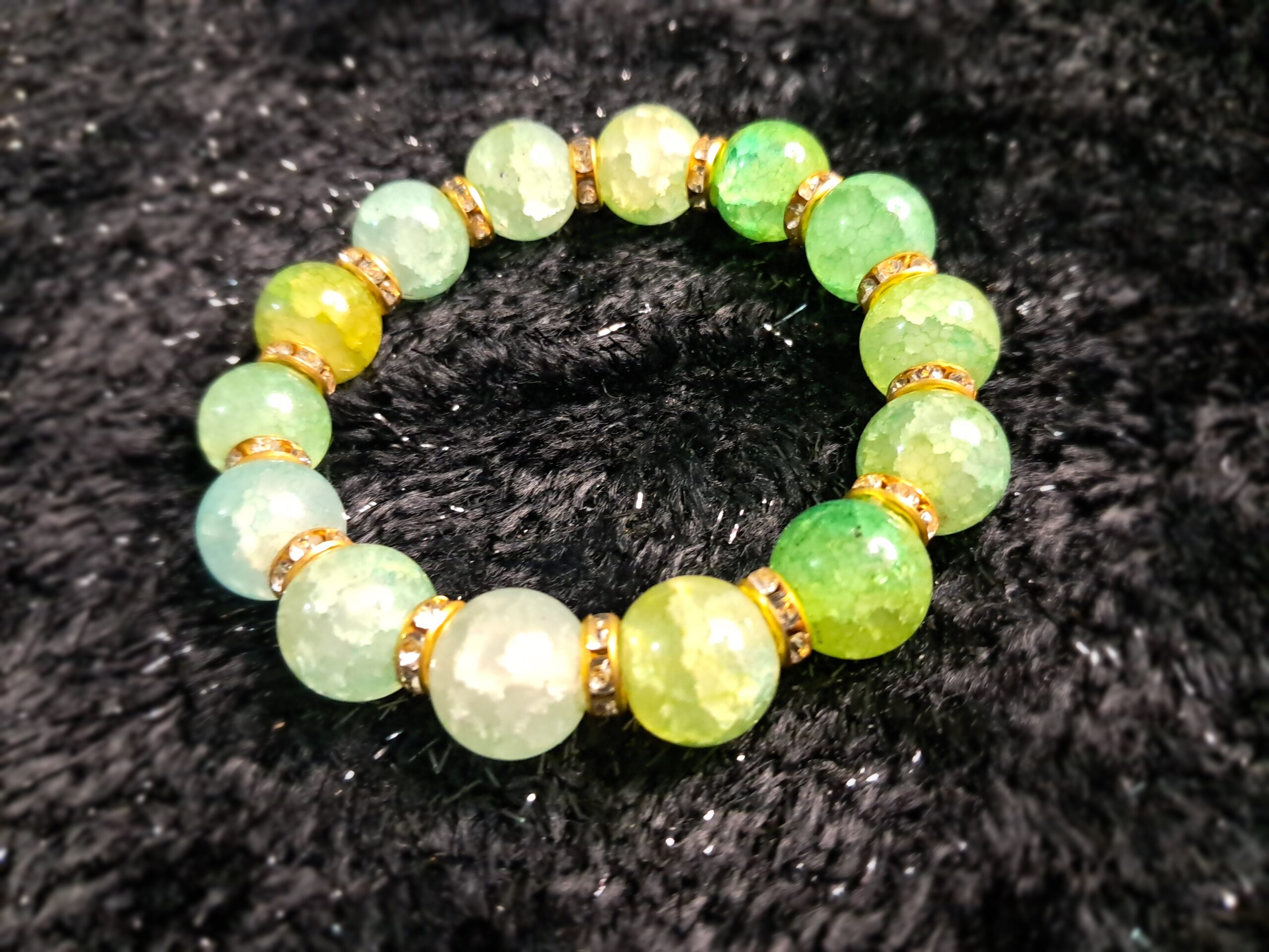 Add a touch of elegance and positive energy to your everyday style with these beautifully crafted beaded bracelets. Designed with glossy crackle-finish gemstone beads in vibrant shades of yellow, green, and pink, each bracelet radiates a unique charm. The beads are perfectly complemented by gold-toned spacers embedded with sparkling crystal accents, creating a luxurious yet modern look. Strung on a stretchable band for comfort and ease, these bracelets are perfect for daily wear, gifting, or stacking with other accessories for a trendy layered style.