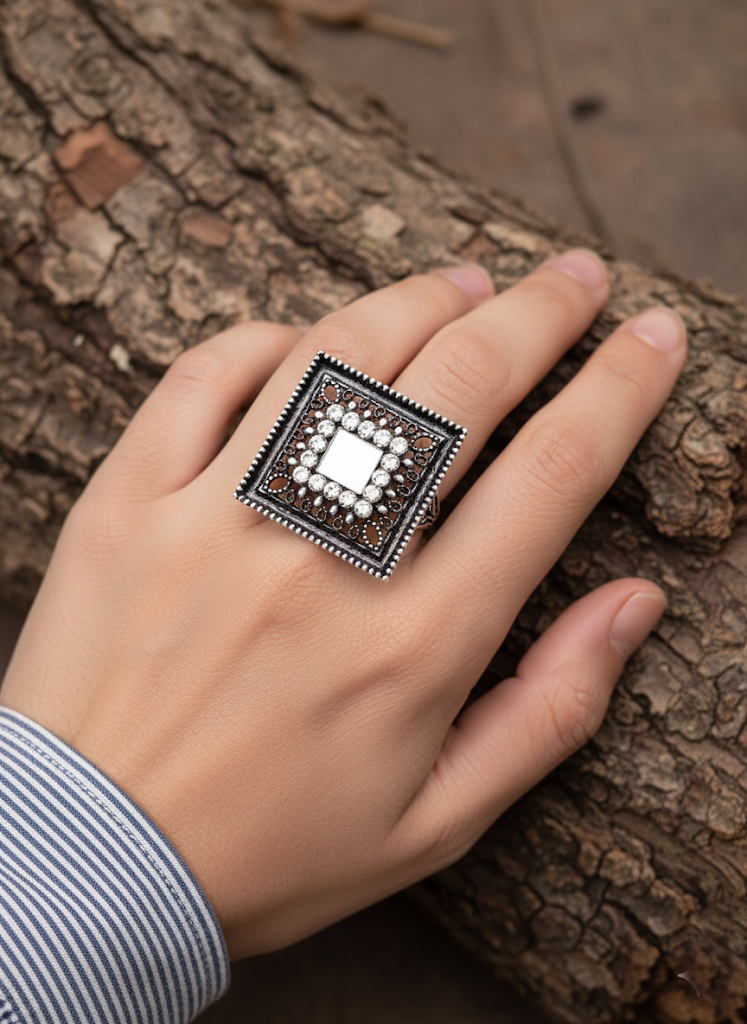 - High-Impact Statement Ring: Its size and intricate geometric detailing ensure it is a high-fashion accessory or cocktail ring that stands out.
