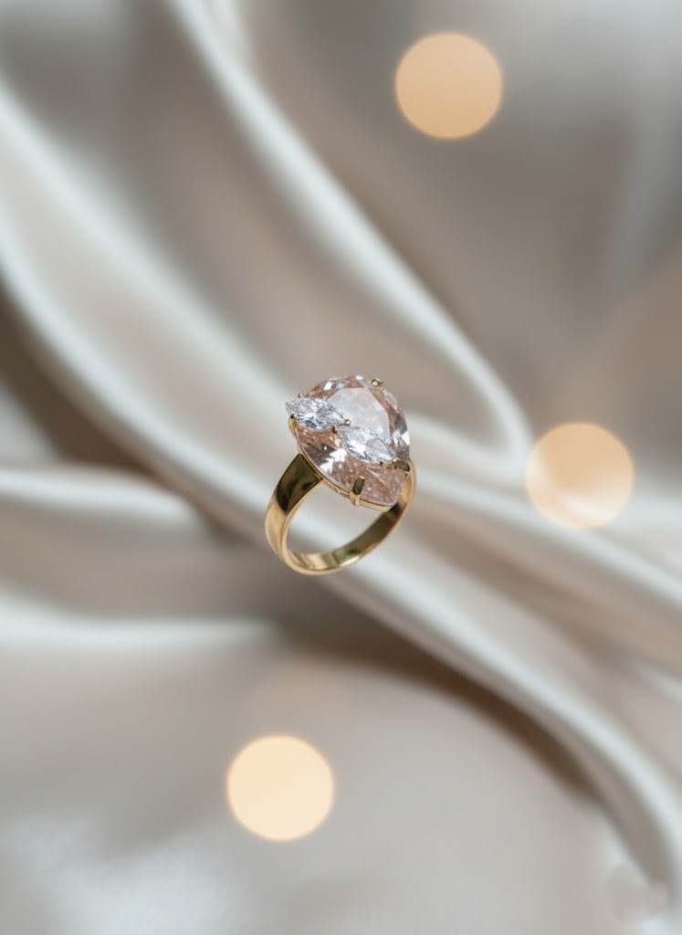 The “Crystal Heart” Solitaire Ring is a stunning embodiment of pure elegance and dazzling simplicity. This magnificent ring features a generously sized, brilliant-cut heart-shaped clear crystal, designed to capture and reflect light with exceptional sparkle. Set in a sleek, polished gold band, the solitaire design emphasizes the sheer beauty and intricate facets of the central gemstone, allowing it to truly shine. Perfect for an engagement, a special anniversary, or as a timeless gift, this ring offers a sophisticated and romantic statement that will be cherished for years to come.