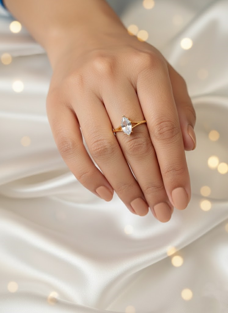 Statement Silhouette: The large, commanding Oval , square , marquise , Pear-Cut Cuff shape provides a bold, eye-catching presence on the finger, reminiscent of Victorian-era cocktail rings.